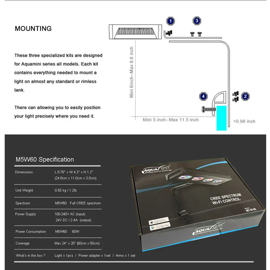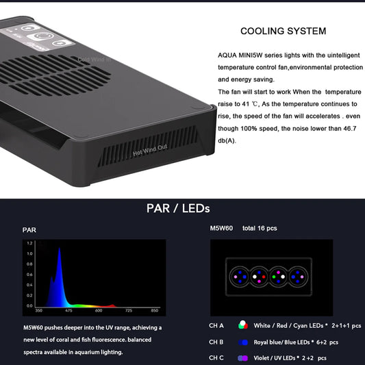 AQUANEST LED Aquarium Light T30/40/60 CREE Full Spectrum Intelligent Temperature Marine SPS LPS for Coral Reef Fish TankSale price $193.70Regular price $261.50