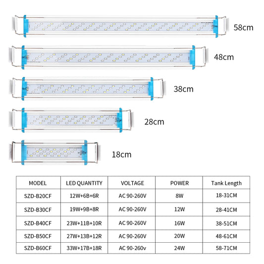 Aquarium LED Light Super Slim Fish Tank Aquatic Plant Grow Lighting Waterproof Bright Clip Lamp RGB LED 31-120cm for Fish TankSale price $75.52Regular price $101.95