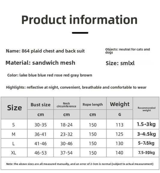 Checked Harness Small Medium-Sized Dog Cat Reflective Breathable Dog Lead Teddy Step In Bichon Pet Walking Harness Leash RopeSale price $33.73Regular price $50.93You saved$17.20 OFF
