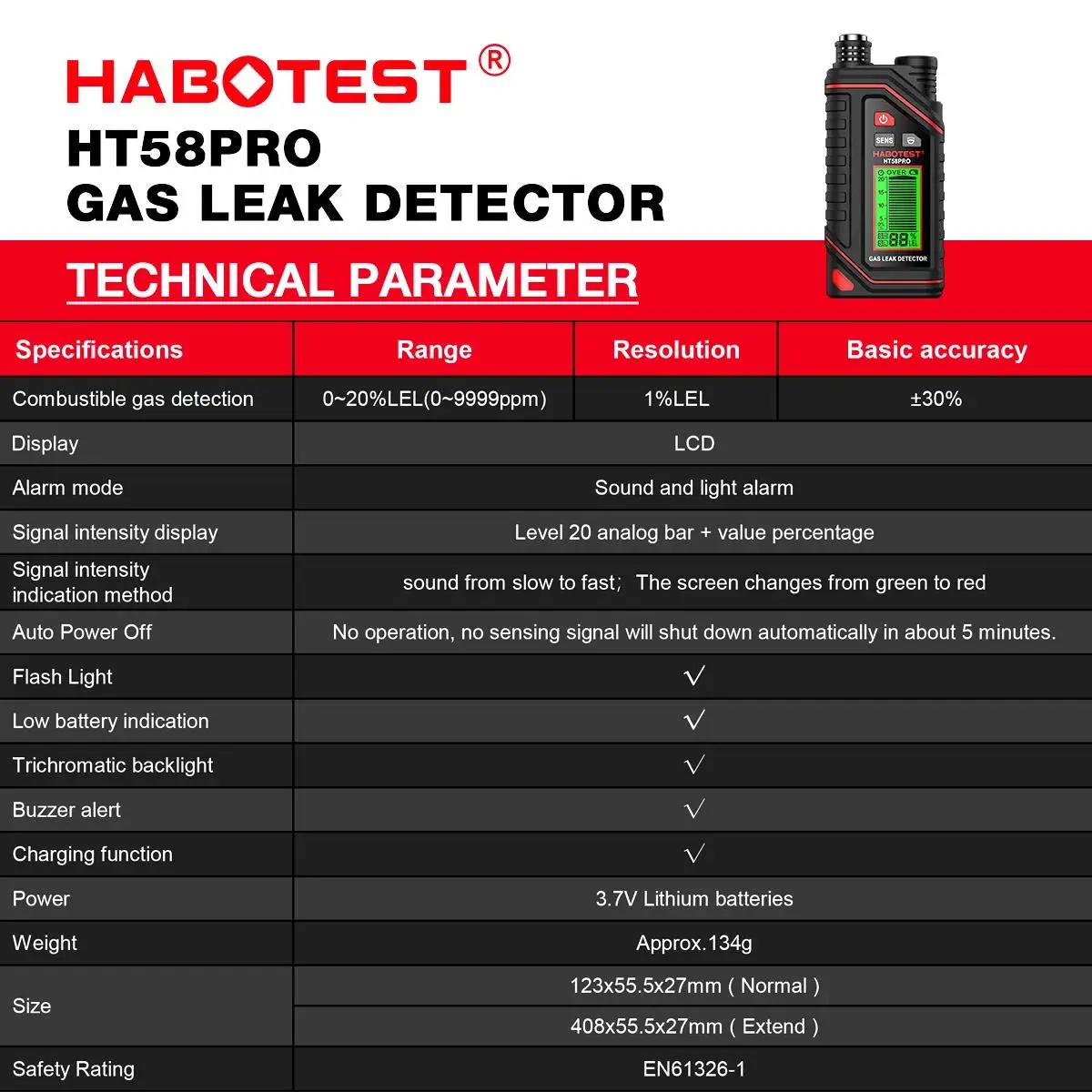 HABOTEST HT58PRO Gas Leak Detector Gas High precision gas sensor sensitive sensor portable combustible Gas Detector