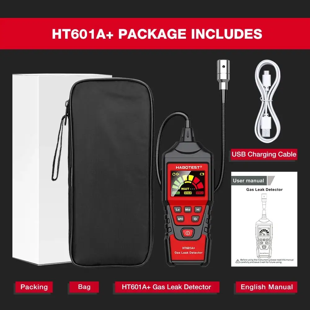 HABOTEST HT601A HT601B Gas Leak Detector 0-1000PPM Sound & Screen Alarm Combustible Flammable Natural Methane Gas Detector
