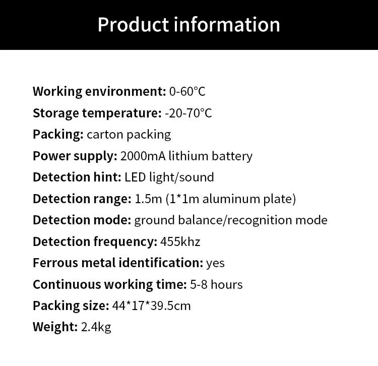 Smart Sensor Metal Tester Professional Cow Stomach Metal Detector Rechargeable Lightweight High Sensitivity Gold Nugget Detector