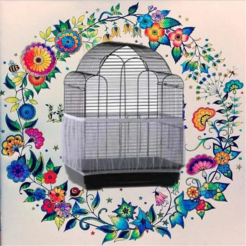 2 Sizes Easy to Clean Birdcage Covers Net Mesh Seed Catcher Guard Bird Cage Accessories Dustproof Airy Mesh Bird Cage Cover