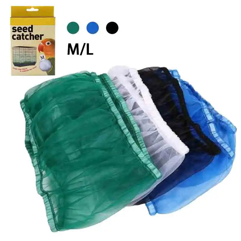 2.Unique nylon mesh seed catcher fits securely around your bird's cage to help eliminate messy seed scatter on your floor.