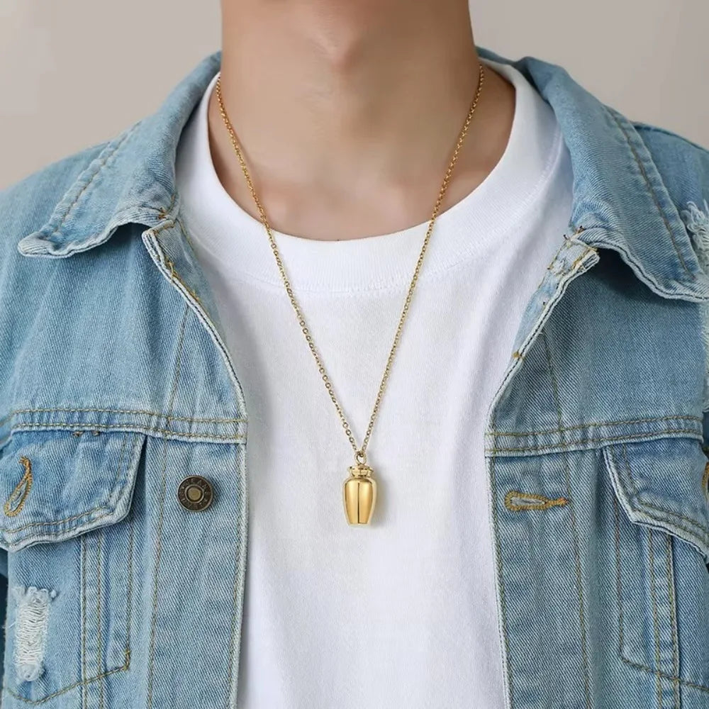 Brand new and high quality Material: Metal Color: Black/Silver/Gold Size: 3.4×1.6cm(1.34×0.63in) Gender: Unisex Package Included: 1 Urn Necklace Pendant Note: 1. There is a 2-3% difference according to manual measurement. Please check the size carefully before you buy the item. 2. Please note that a slight color difference should be acceptable due to the light and screen.