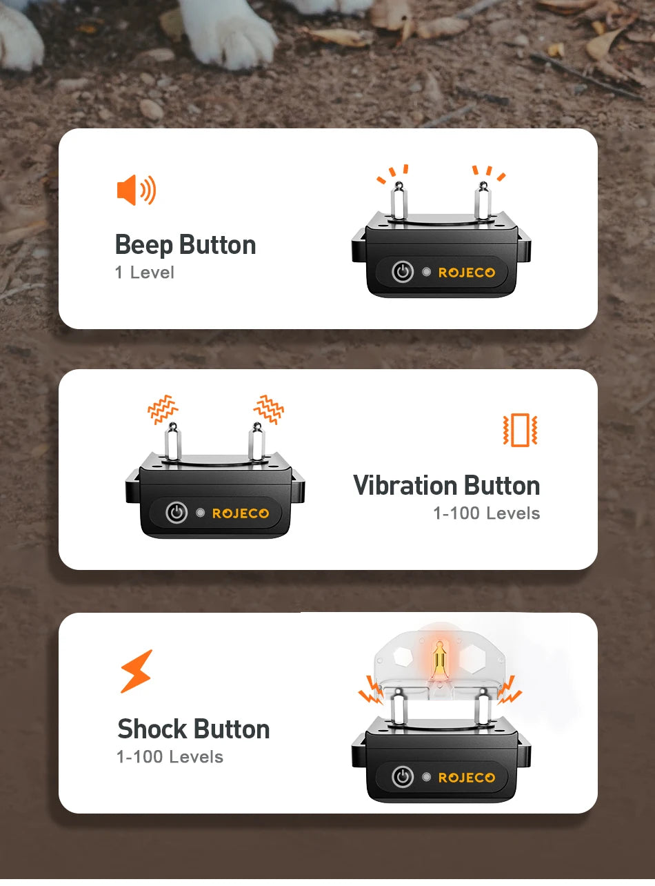 Pets are indispensable family members in our lives and we have responsibility to protect and guide them. They are always like a kids, so it is important that choose a reliable training product to correct their behavior, rojeco training collar with protective cases, anti-wear buckle and 1-100 levels of vibration and shock to control, it's very safe for dogs, they are a part of our lives, but we mean everything to them!!