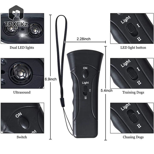 Portable Ultrasonic Dog Repeller Pet Training Device Outdoor Animal Deterrent With LED Light To Stop Barking Chase AwaySale price $31.27Regular price $47.22