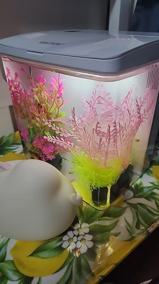 The silent water pump operates, initiating a new lifestyle of coexistence between humans and humans. At night, the lights are turned on and it can also be used as a night light