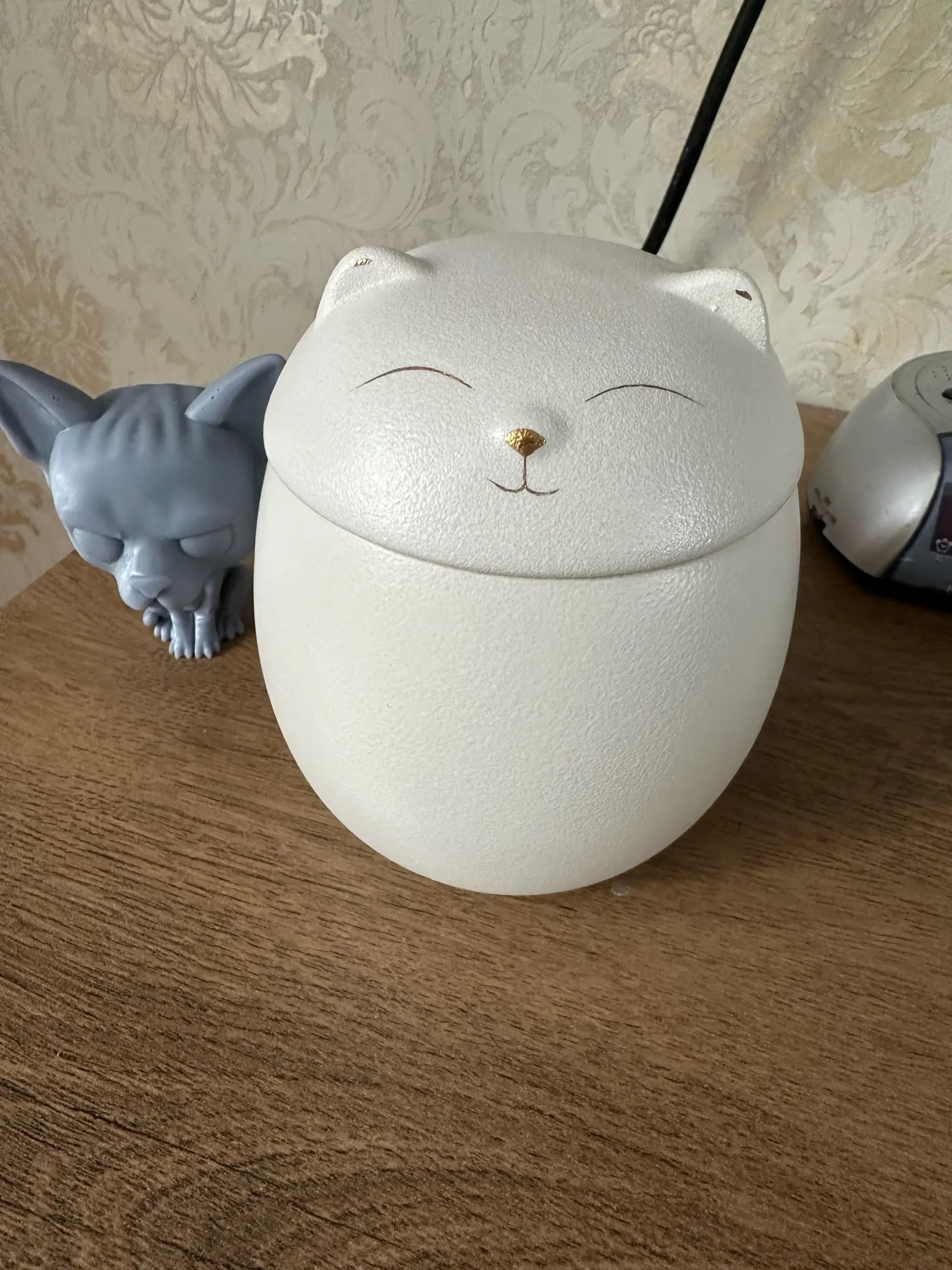 【Unique Design】Premium white urn for cat,the shape of the whole urn is a smiling cat, very unique.