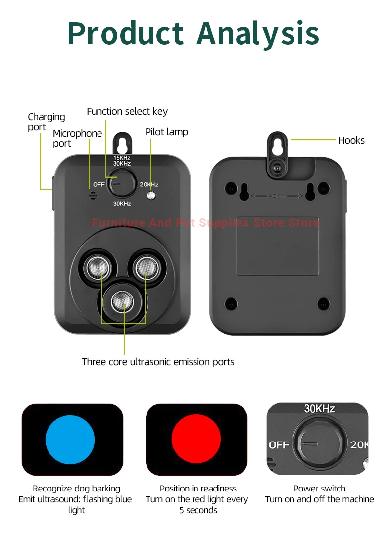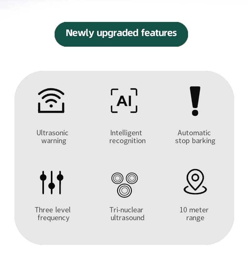 Features: Ultrasonic warning, intelligent recognition, automatic bark stop, three frequency settings, three core ultrasonic waves.