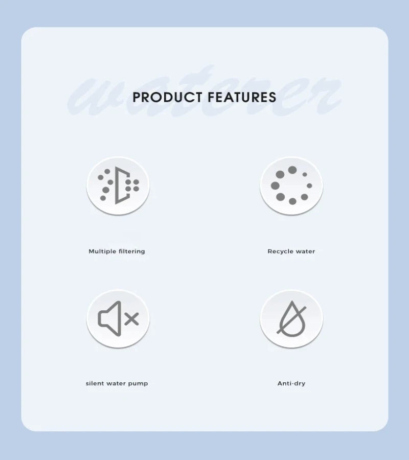 Our fountain comes with an anti-dry burning feature, ensuring safe and continuous water flow for your cat.