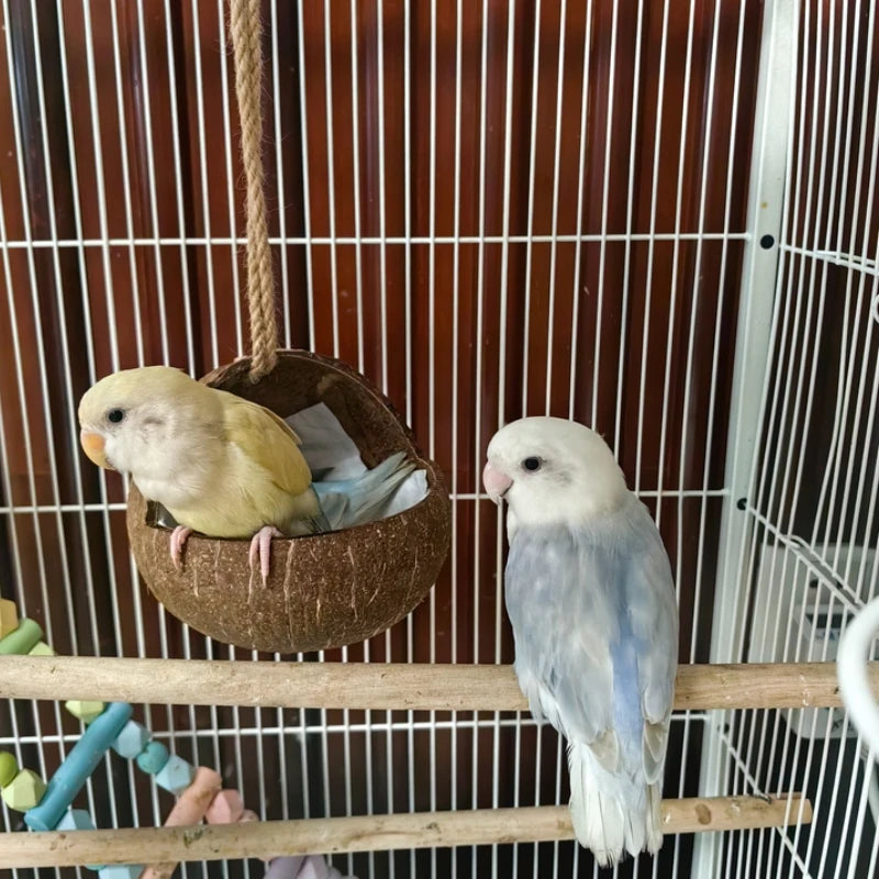 Coconut Bird Nest Hut with Ladder for Parrots Parakeet Conures Cockatiel - Small Animals House Pet Cage Habitats Decor