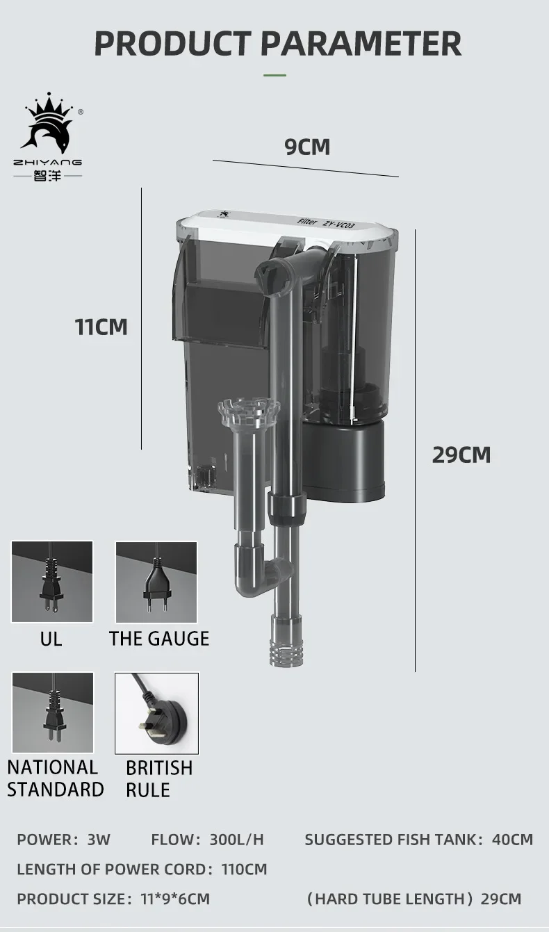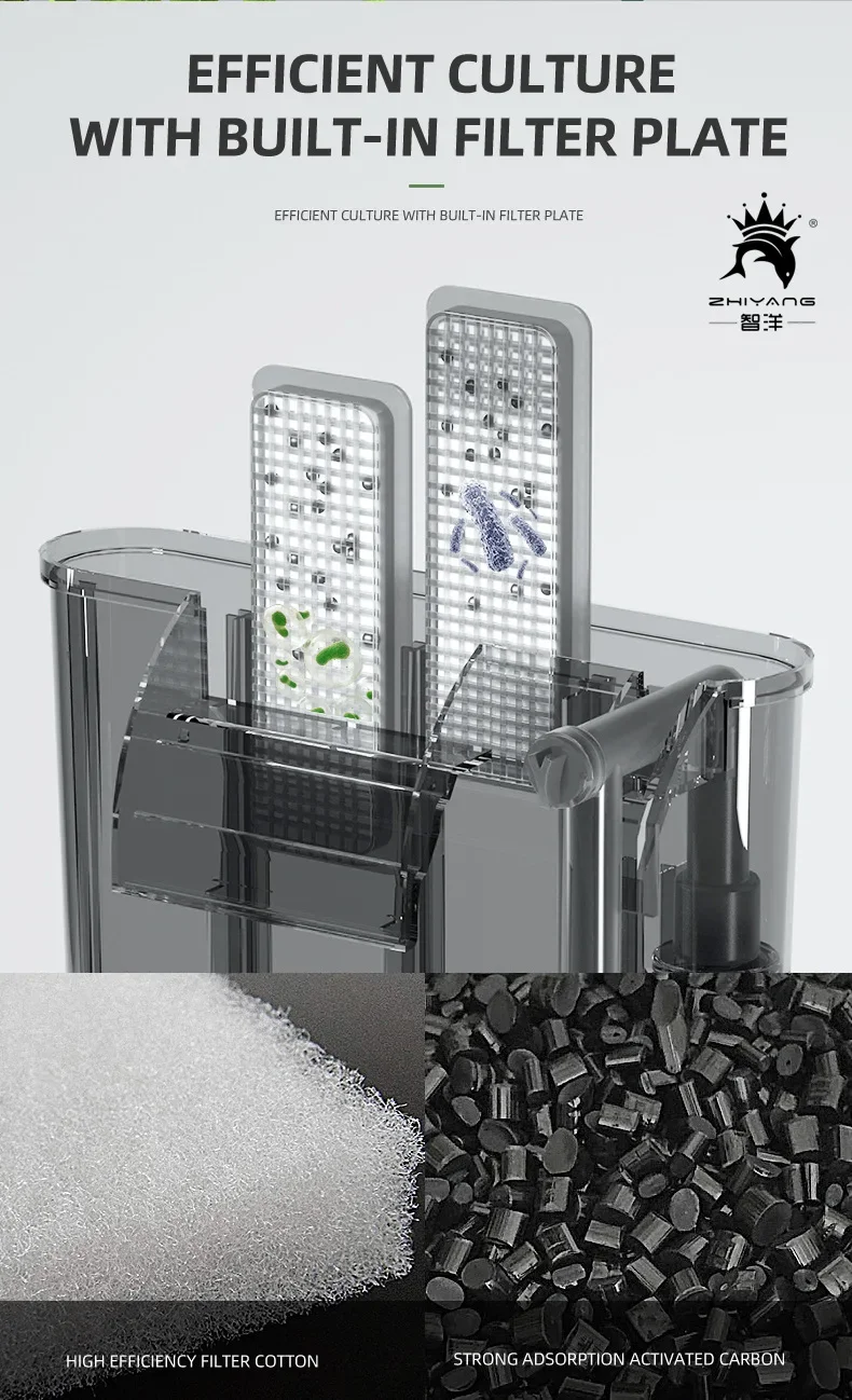 External Filter for Fish Tank Aquarium Waterfall Filter Pump Hanging Fish Tank Filter with Degreasing Membrane Wall-Mounted