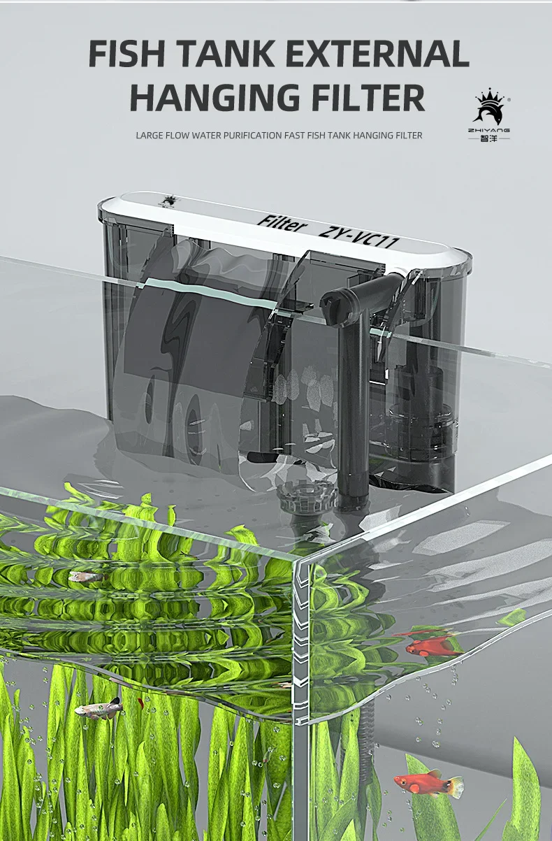 External Filter for Fish Tank Aquarium, Waterfall Filter Pump, Hanging Fish Tank Filter with Degreasing Membrane, Wall-Mounted