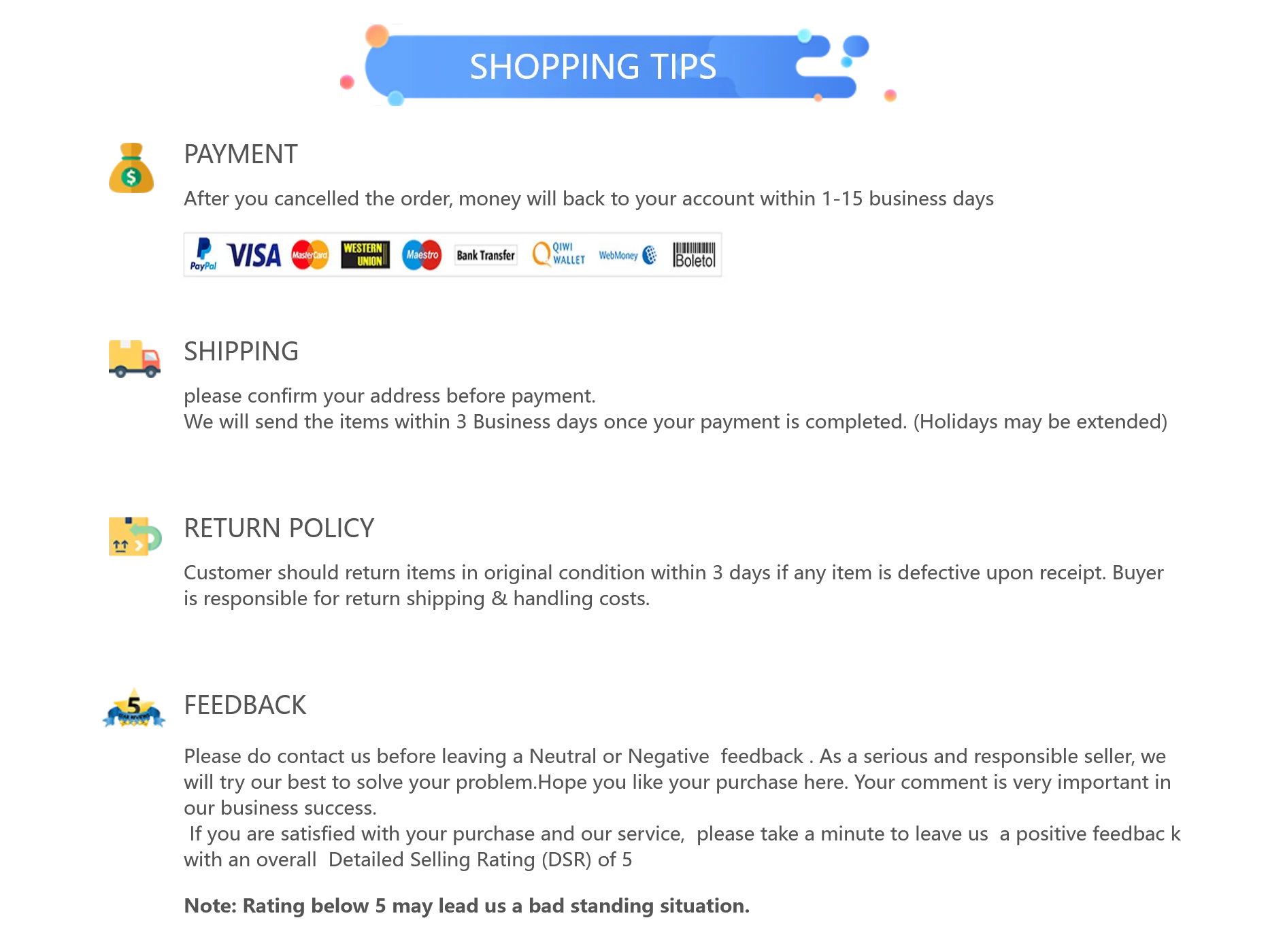 Guaranteed Quality of every products in our store.