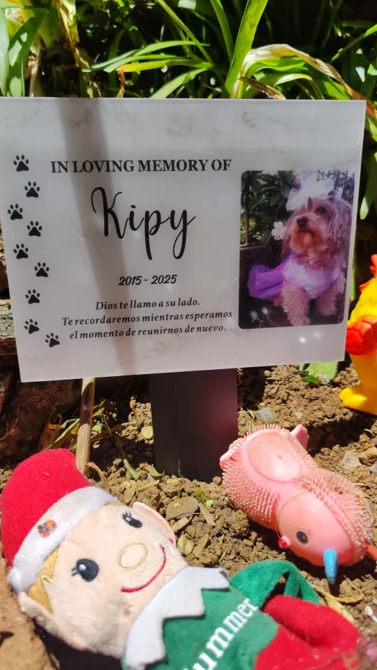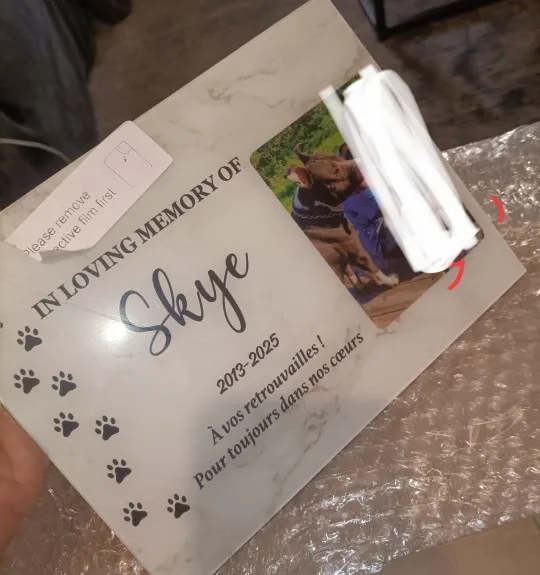 We recommend digging a hole first, before installing your memorial stake and then to back fill. This will stop any breakages of your pet memorial stake.