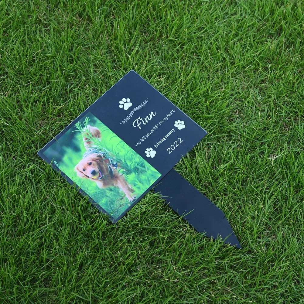 Personalised Pet Memorial Stake, Pet Loss, Paw Prints, Grave Marker - add Your Own Photo and Text LARGE and REGULAR Sizes