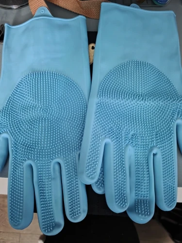 VERSATILE USE: The pet gloves are ideal for long and short haired dogs,cats,horses,rabbits and other pets,grooming the hair quickly,gently and effectively. It also can be used for kitchen,cleaning the bathroom & bed room,washing dishes,removing wardrobe dust,fruit & vegetable cleaning.