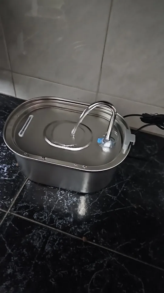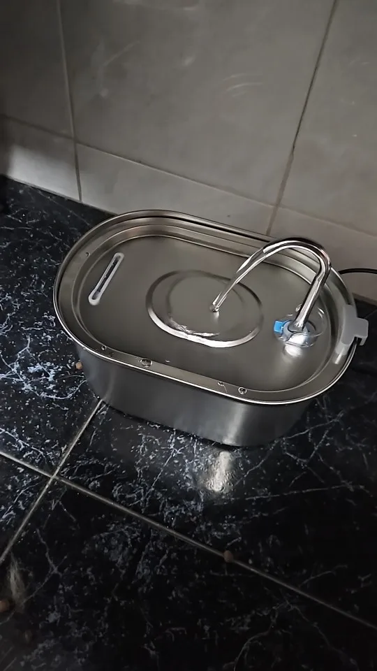 The cat water fountain is made of 304 stainless steel, and more durable and orrosion resistant. BPA free and dishwasher safe, easy to clean.