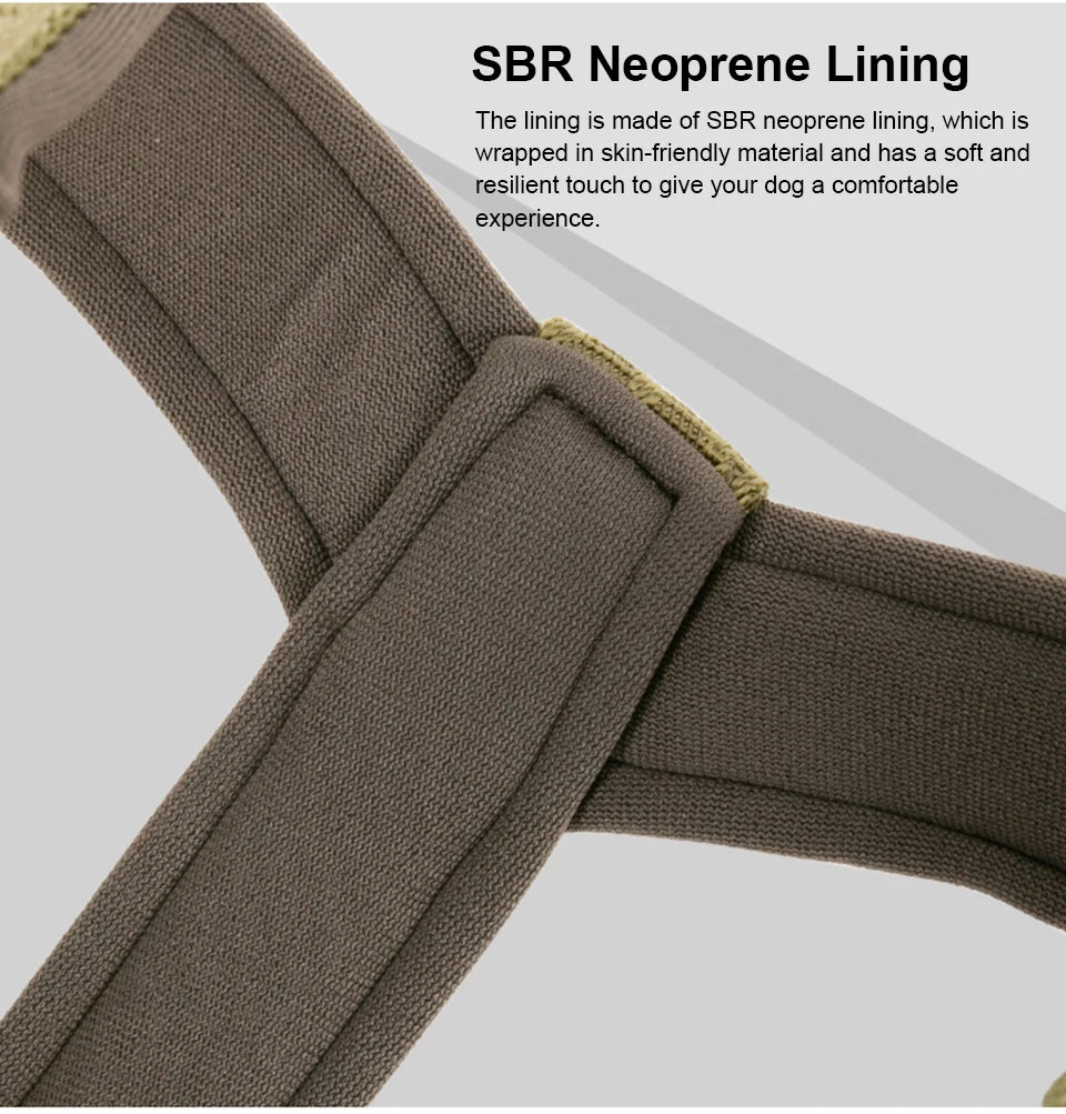 The lining is make of the SBR Neoprene material,that is a soft and skin-friendly material,can protect pet's fur and make them feel comfortable and normal during walking.